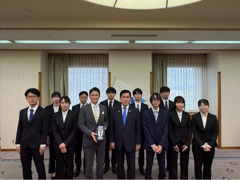 所属メンバーが鹿児島県知事を表敬訪問し、本研究室でのアントレプレナーシップ教育の実施状況とその成果を報告しました。